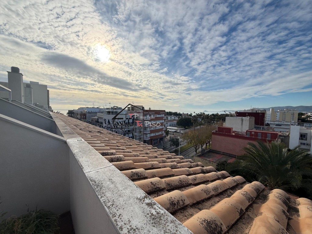 Descubre este magnífico ático dúplex semi-reformado muy próximo a la playa del Morrongo de Benicarló. Con una superficie total construida de 100 m2 y útil de 90 m2, esta propiedad ofrece un espacio confortable ideal para disfrutar del estilo de vida mediterráneo. Se distribuye en 2 plantas:Planta principal: Entrada recibidor + 1 dormitorio principal + 1 cuarto de baño + salón-cocina + terraza balcón.Planta ático: Gran buhardilla + trastero despensa + terraza ático.Incluye plaza de garaje en sótano del edificio.La vivienda se destaca luminosidad y sus amplias ventanas que permiten una luz natural abundante con vistas despejadas y al mar.No pierdas la oportunidad única que representa adquirir este atractivo hogar junto al mar Mediterráneo; es perfecto tanto como residencia habitual o inversión vacacional.