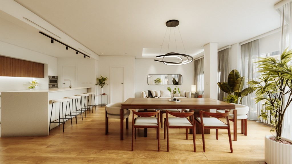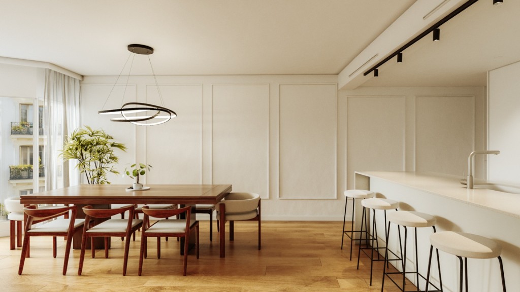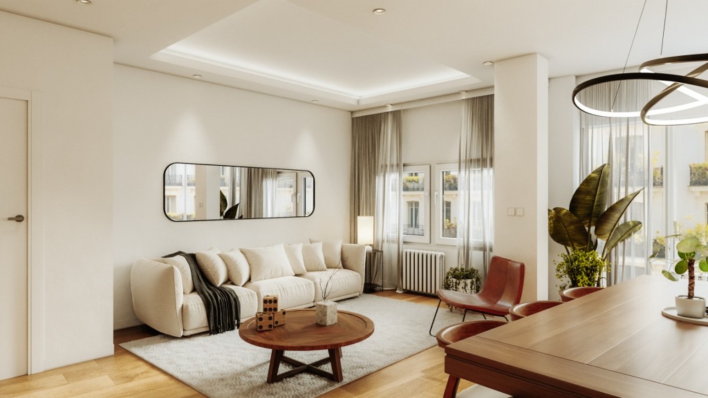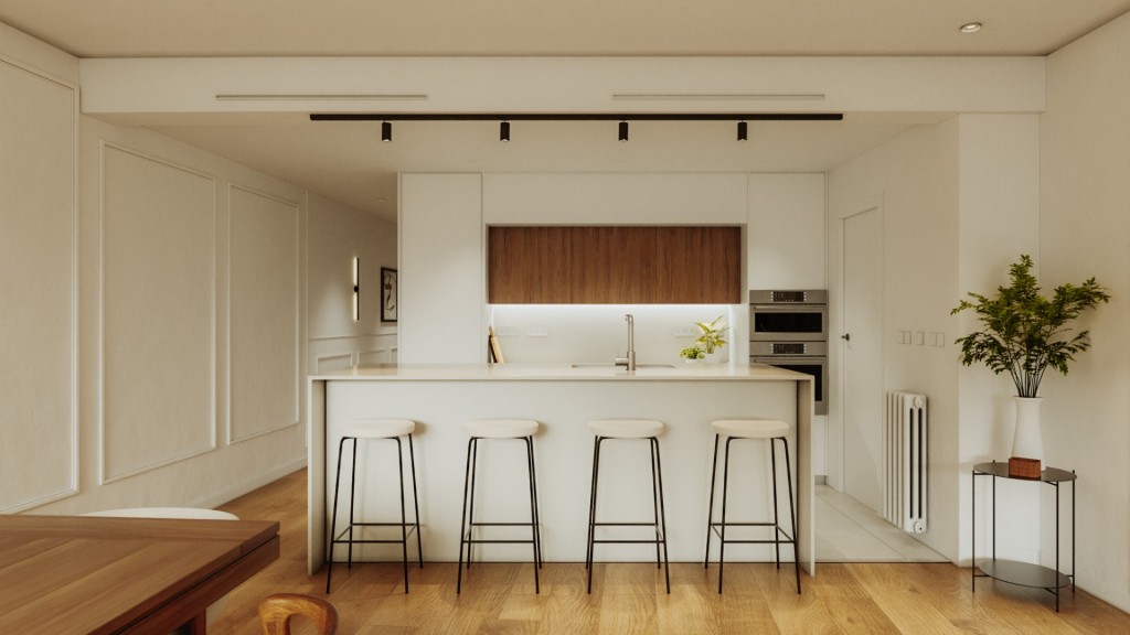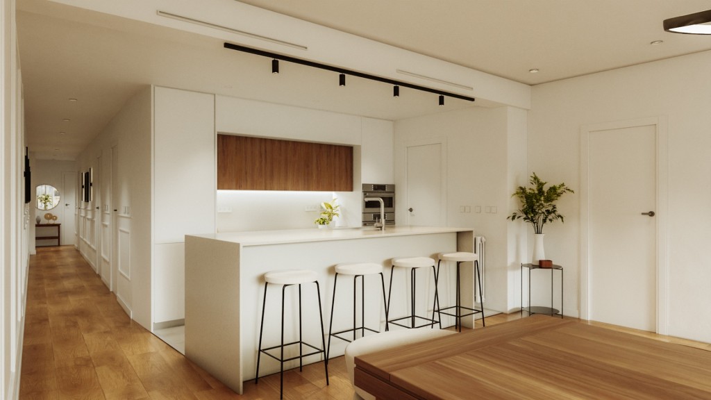 La reforma se está ejecutando con materiales de alta calidad y un cuidado exquisito en cada detalle. Dispone de instalación de aire acondicionado en todas las estancias, suelos de tarima de alta resistencia, acabados porcelánicos en los baños y paredes de terminación lisa. Las carpinterías exteriores de altas prestaciones garantizan un óptimo aislamiento térmico y acústico. Asimismo, tanto la instalación eléctrica como la fontanería han sido completamente renovadas. La cocina se entrega totalmente equipada, con electrodomésticos integrados y diseño contemporáneo.