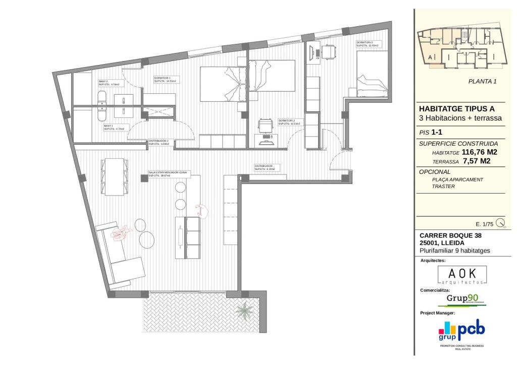 EDIFICIO Elegance Lleida – Obra nueva en La BordetaDescubre un concepto diferente de vivienda en el corazón de La Bordeta, en Lleida. Diseño innovador, calidad y confort en una promoción exclusiva pensada para quienes buscan algo más.✨ Aquí, usted es el protagonista. Posibilidad de personalizar acabados y distribución, previo estudio.Adapta los acabados y la distribución interior a tu estilo de vida desde el primer momento.🏡 Viviendas únicas3 dormitorios2 baños completosCocina moderna abierta al comedorAmplio salón con salida a terraza🚗 Parking opcional (consultar precio)Calidades que marcan la diferenciaAcabados de alta calidadSuelos imitación maderaCarpintería interior lacada en blancoCerramientos de aluminio con doble cristal tipo ClimalitGrifería monomandoSistema de calefacción y climatización por aerotermia♻️ Alta calificación energética, pensada para ofrecer mayor eficiencia y ahorro.📍 Ubicado en un entorno tranquilo y consolidado, con todos los servicios a tu alcance.💫 Solo 9 viviendas en una promoción exclusiva, cuidada hasta el último detalle.📞 Infórmate y reserva tu nueva vivienda en EDIFICIO Elegance Lleida.Las superficies, distribuciones y planos mostrados son orientativos y pueden estar sujetos a posibles modificaciones durante el desarrollo del proyecto.