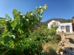 En el exterior tiene un bonito porche empedrado con bancos de piedra y un emparrado.